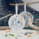 Seas e Saudações Ornament de Seashell sobre Feriados Costeiros Feriados de Natal Ornamentos de Foto com marinho azul-oceano e arenoso que margeis pendurados na corda de juta na madeira de shiplap costeira com tipografia elegante. Adicione duas das suas fotos e uma mensagem pessoal para um ornamento ou presente náutico divertido. Entre em contato conosco em cedarandstring@gmail.com se precisar de assistência com o design ou produtos correspondentes.