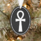 Este Enfeites de natal em forma oval apresenta um tornozelo branco em preto. Se você gosta do Egito e de símbolos egípcios antigos, então isso poderia ser uma boa adição à sua árvore de Natal ou decoração de férias. Dar como presente a alguém que gosta de egiptologia e hieróglifos.
