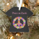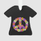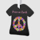 Um sinal de paz floral em tons de rosa, amarelo, laranja, roxo, verde, branco e preto.