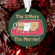 Outra decoração de Natal fofa de JessicaAmber - pergunte sobre pedidos personalizados! Esta é a estação para se juntar ao redor do fogo com amigos, família, entes queridos, ficar quente e derreter? Bem, se você é um marshmallow e um casal de graham crackers, é! Possui snacks de desenho animados sentados juntos em um sofá, e o slogan "O S'more, o Merrier!" que você pode editar. Um presente divertido para a família, amigos e passados! 🎄 Para mais designs de Natal, confira a minha loja: zazzle.com/jessicaamberartist 🎄 Para pedidos personalizados, envie-me uma mensagem no Zazzle
