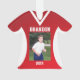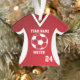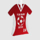 Camisa de futebol vermelha e branca com foto. Personalize com a foto, o nome, a equipe e a data do jogador.