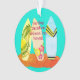 O ornamento de folga de surfe mantém-se com design ilustrado em ambos os lados. Adicione texto personalizado em três locais com local de férias, data de viagem e nomes. Crie esta manutenção única para a árvore de Natal ou para pendurar no carro ou em qualquer outro lugar.