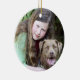 Julia e o azevinho, um Retriever de baía de Chesapeake, são 4-H os membros que participam em esportes da agilidade do cão de Puyallup, WA. Nesta imagem, Julia é dobrada para baixo para a cabeça de cão, com um braço em parte em torno do pescoço do azevinho, com seu cabelo marrom longo que flui abaixo dela para trás sobre sua camisa verde. O azevinho (luz - marrom all over) tem suas orelhas em uma posição alerta e em um sorriso grande, aberto-mouthed do cão com a língua que pendura para fora. Seus olhos ambarinos olham fixamente na câmera. A grama verde e as folhas verdes do rododendro formam um fundo. Completamente, fazem um retrato agradável, ocasional de sua parceria. Copyright Gail Storrs 2011.