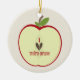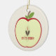 Um ó ornamento do professor da categoria que caracteriza uma ilustração da metade de uma maçã vermelha com as duas sementes na forma de um coração. O texto diz-me "(amor) terceiro grau.