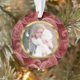 Uma ideia excelente para Avós, Tias, Tios, Pais, Professores e outros, este design personalizado tem um modelo fotográfico para carregar uma foto do seu filho, animal ou membro da família em vez da foto da amostra. Um belo quadro de ouro rodeia a foto com um padrão paisley vermelho e arrojado como fundo. O verso do ornamento tem uma modelo de texto para personalizar como quiser. Este ornamento faz um presente maravilhoso para familiares e amigos próximos no Natal.
