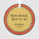 Neste detalhe de uma impressão de devoção belga do século XIX, uma Rua madura e cabeleira de cinza. José se posiciona diante de uma parede vermelha pendurada com trim amarelo ouro. A tapeçaria é padronizada com cruzes iguais armadas fechadas em quadrados rotacionados. Como ele é pendurado desafia a explicação lógica porque o fundo consiste num céu aqua-azul infinitamente profundo abarrotado de estrelas. + Rua. José é ricamente sorteado em cores fortes. Seu manto é vermelho; seu manto, verde com um revestimento de aqua escuro e bordas amarelas ouros. Ele segura um spray de lírios brancos simbolizando a pureza na mão direita e uma regra de carpinteiro marrom em forma de L, indicativa da sua profissão na esquerda. Por baixo das Ruas. Os pés enrisionados de Joseph na imagem do comprimento do cheio que aparece, por exemplo, nas nossas cartas e posters de saudação nesta COLLECTION são atributos adicionais — um pequeno dragão, uma coroa, um pergaminho e um globo inscrito com os nomes dos continentes populados — que falam para o seu papel de protetor da Igreja. + Este litógrafo cromo ou colorido foi originalmente publicado para promulgar a "Oração à Rua" do Papa Leão XIII de 1889. + Banquete principal de Ruas. Joseph: 19 de março; Banquete de Ruas. Joseph, o Trabalhador: 1º de maio + Crédito de Imagem (VVP 09): Detalhe de um cromoliógrafo antigo de Santo Joseph, Protetor Church, Reze por Nós [H. Jozef, beschermer der H. Kerk, B.V.O.] originalmente publicado por K[arel] v[an] d[er] Vyvere-Petyt, Bruges, Bélgica, c. 1890, da coleção privada de efemérsia religiosa do designer.