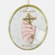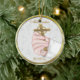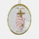 Um ornamento cerâmico da lembrança bonita para o batismo ou o baptismo do bebê. A mão do bebê das características de design que guardara a cruz do ouro no fundo do laço com quadro do olhar do ouro. Fácil personalizar para sua ocasião especial.