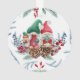 Gnomo de aquarela, com lanterna e árvore de Natal e decoração de conchas, pinhos e bagas vermelhas e azuis