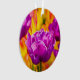 Violeta colorida, tulipas roxas, cor-de-rosa num leito de flores. Praticamente todas as cores do arco-íris estão presentes. Bela e positiva cena floral. Fotografia macro.