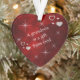 Aqui está uma bela Enfeites de natal para um avô dar a um neto. Ele apresenta o coração prateado e imagens estelares sobre um fundo vermelho de grande inclinação. No centro está seu texto personalizado em branco. Atualmente, o texto diz "Um neto é um presente de Deus", mas você pode mudá-lo para dizer o que quiser. Há um campo de texto segundo no verso, que tem as mesmas estrelas e design de corações. Este é um presente especial de manutenção da família que será precioso para sempre.
