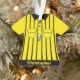 Uma camisa uniforme do árbitro bonito do futebol deu forma a enfeites de natal. Grande presente para o fã de esportes.
