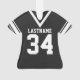 Uma camisa de futebol preto-e-branco com números e nomes variáveis.