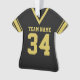Negra com camisa de futebol dourada com números e nomes variáveis.