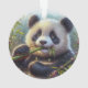 Pintura de jovens panda giros comendo prigos de bambu verde