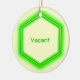 Os hexágonos de estrutura de fios nas cores "neon" indicam a disponibilidade de espaço no qual se encontra pendurado. Um lado do medalhão tem um hexágono verde com a palavra "Vacant" - Outro lado tem hexágono vermelho com "Occupied"