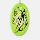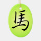 Ornamento oval com cabeça de cavalo de tinta preta, fundo verde do inclinação, símbolo do caráter chinês para o cavalo no reverso. Este é um grande presente por o ano chinês do cavalo (31 de janeiro de 2014 - 18 de fevereiro de 2015), para as pessoas que eram nascidas em um ano do cavalo, ou para amantes do cavalo em toda parte. O cavalo simboliza a ação, a liberdade, o progresso, a aventura e o romance. Espiritual, o cavalo é afortunado para muitas pessoas que incluem as pessoas do negócio e das vendas, os artistas e os executores, os atletas, os engenheiros, os viajantes e as pessoas que trabalhe com ou perto da terra. 2014 são o ano do cavalo (verde) da madeira de Yang.