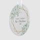 Elegante cor-de-água verde casamento ornamento acrílico de Natal para celebrar seu primeiro Natal juntos e Sr. e Sra. Este design apresenta flores brancas e folhagem botânica verde que decoram um centro de imagens geométricas de ouro moderno.