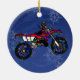 Ornamento impressionante da bicicleta da sujeira para o cavaleiro ávido da fuga ou o motocrosser sério. Este produto temático do Natal extremo tem um dirtbike vermelho coberto em luzes de incandescência do Xmas. Design original para o fmx, o motocross, e os outros cavaleiros da motocicleta.