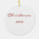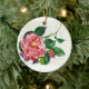 Uns enfeites de natal cerâmicos do círculo com uma camélia vermelha bonita. Baseado em uma pintura da aguarela por Joana C. Thomson a parte traseira: Natal 2010