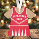 Ornamento Uniforme da Equipe de Montagem de Equipamento de cheerleader. Este ornamento de cheerleader é perfeito para qualquer um que aplaude esportes escolares ou ama esportes de aplausos. Personalize este design personalizado com seu próprio nome e ano.