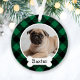 Personalize este design de ornamento de xadrez verde e preto festivo para verificação de búfalos com uma foto do seu cachorro com o primeiro nome no nome do monograma do cão. Um presente de excelente para amantes de cachorros, para celebrar o primeiro Natal de um filhote ou para estimar a memória de um querido cachorro da família.