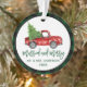 Xadrez Verde de Espelho Moderno Casada e Feliz - Ornamento de Caminhão Vermelho Vintage de Watercolor