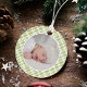 Nosso Ornamento de Fotografias é uma manutenção perfeita para nunca esquecer seu Primeiro Natal como vovô e vovó. Escolha as melhores fotos do seu querido bebê e enfeite sua árvore de Natal com este ornamento na Elegante Xadrez de Natal GINGHAM ou padrão de Tartan em verde e branco. Você também pode personalizar as cores para complementar sua paleta de fotos, fazer este ornamento tão exclusivo quanto suas memórias de feriado Adicione o nome e o ano do seu bebê usando o modelo.