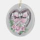 Ornamentos de ferradura,roupa, t-shirts, presentes por ArtMuvz Illustration. Possui um coração aquoso com rosas e duas ferraduras amarradas com fita. Para personalizar, adicione seu nome ou adicione texto. Personalize este ornamento cardíaco para torná-lo exclusivo seu ou para dar como presente personalizado