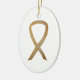 O ornamento apresenta a pintura de uma fita de reconhecimento de ouro. A faixa de sensibilização ouro significa apoio à sensibilização para a infância ou o cancer pediátrico. A arte da fita de reconhecimento do ouro pode ser personalizada com mensagens personalizadas para fazer ornamentos ou pingentes de causas de excelentes para arrecadadores de fundos, presentes de Natal ou feriados, ou outros eventos ou ocasiões especiais.