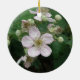 Este ornamento bonito ao estilo pingente apresenta uma fotografia de uma vinha de amora coberta por flores. Essas lindas flores parecem brancas de longe, mas se você olhar de perto, as pétalas têm uma coloração rosa pálida.
