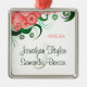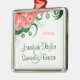 © Sunny Mars Design - Hibiscus Floral: Rosa na Ornação de Guarda de Casamento de Metal Quadrado Personalizado - Elegante, elegante, de moda, enigma, enfeite de pausa de manutenção de casamento personalizado na moda com uma bela imagem de um lindo e bonito design de hibisco tropical floral floral cor-de-rosa.