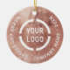 Os ornamentos de negócios personalizados apresentam fundo de folha rosa dourada falso com logotipo da empresa e informações personalizadas de ambos os lados, modernos e tradicionais. Selecione "Clique para personalizar mais" para ajustar o tamanho do logotipo.
