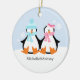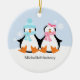 Enfeites de natal personalizáveis com um adorável casal de pinguins. ©Sanqunetti Design