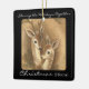Compartilhe os feriados com este casal de animais de estimação, preto e branco, preto e branco. Personalize com sua própria mensagem pessoal e ano. Enfeites de natal Personalizados, apresenta dois veados, um macho e uma fêmea em forma de retrato. Buk e fawn animais de inverno bonitos.
