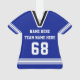 Ornamentos personalizados de futebol de Jersey em suas cores. Você, ou CALL Designer Linda: 239-949-9090 EST pode MUDAR as CORES dos Enfeites de natal de futebol azuis e brancos para o seu time de futebol personalizado dando presentes a COLORS. Legal campo de futebol, atrizes desportivas e ornamentos azuis e de futebol branco para rapazes. Presentes de Natal de Futebol baratos para jogadores ou Mude o texto para presentes para treinadores de futebol.