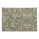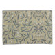 Ornate floral pattern with dark blue vines and leaves on a beige background. White circular flowers with gold accents add elegance and contrast.