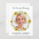 Modern Watercolor Sunflower Floral Simpatia Foto Funeral Obrigado Cartões. Estes cartões de compaixão funerária apresentam um modelo único de foto em sunflower wreath, name and dates, em um moderno design branco. Personalize de volta com sua mensagem de obrigados. Estes cartões de compaixão memoriais são perfeitos para o funeral, cartas de agradecimento, ou celebração da vida, cartas de agradecimento. COPYRIGHT © 2020 Judy Burrows, Black Dog Art - Todos Os Direitos Reservados. Orquestra do Funeral Sunflower Simpatia Obrigado