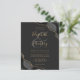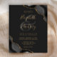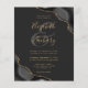 Uma design de agate de cor-de-água preta, aparada com brilho sujo de ouro, aparece em dois cantos deste elegante design. Personalize-o com os nomes dos casais em um guião de escrita manual dourada sobre uma grande e grande cinza. Adicione os detalhes do casamento em uma placa colorida dourada e fontes itálicas em um fundo fora de preto. O verso apresenta um design de agate preto e dourado correspondente. NOTA: os envelopes não são incluídos automaticamente nestes convites de orçamento, portanto lembre-se de escolher a opção "envelopes brancos"!