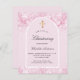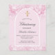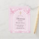 Um fundo cor-de-rosa pincelado e um quadro de arco. Decorado com poeira cintilante rosa. Personalize e um nome e detalhes da cerimônia. Escrito elegante com letra manual. Traseira: fundo cor-de-rosa pincelado.