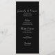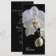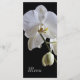 Personalize a Orquídea Branca bonito no Menu de Casamento Preto com os detalhes da refeição que você servirá no seu janto de recepção de casamento ou almoço de chá de panela adicionando a salada ou o primeiro curso, o primeiro curso ou o segundo curso e a sobremesa ou o terceiro curso. Personalize-o com os nomes da noiva e noiva, local de recepção e data da cerimônia do casamento. Sinta-se livre para alterar o texto ou a fonte de acordo com as suas necessidades nupciais. Este elegante menu de casamento personalizado apresenta uma fotografia floral de uma flor de orquídea de falaenopse branca no caule com um fundo preto. Perfeito para o casal que planeja um tema de casamento de orquídeas tropicais.