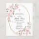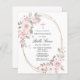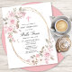 O convite da Primeira Comunhão elegante e feminina apresenta lindas rosas rosa e flores brancas de magnólia que decoram um quadro de ouro. Todo o texto é editável para que você possa usá-lo para qualquer tipo de cerimônia religiosa, Batismo, Cristo, Dedicação ou Confirmação.