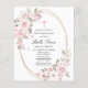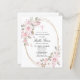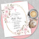 O convite da Primeira Comunhão elegante e feminina apresenta lindas rosas rosa e flores brancas de magnólia que decoram um quadro de ouro. Todo o texto é editável para que você possa usá-lo para qualquer tipo de cerimônia religiosa, Batismo, Cristo, Dedicação ou Confirmação.