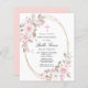 O convite da Primeira Comunhão elegante e feminina apresenta lindas rosas rosa e flores brancas de magnólia que decoram um quadro de ouro. Todo o texto é editável para que você possa usá-lo para qualquer tipo de cerimônia religiosa, Batismo, Cristo, Dedicação ou Confirmação.