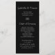 Dê aos seus hóspedes a ordem da sua cerimônia de casamento e cronograma com a elegante Orquídea Branca no Programa de Casamento Negro. Este bonito programa de casamento botânico apresenta uma fotografia floral de flores de orquídea de falaenopse branca no caule com fundo preto.