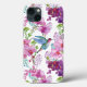 Um Caso De iPhone 13 Brilhante E Animado, Patterado Em Orquídeas Rosa E Roxo Com Um Hummingbird Central