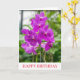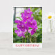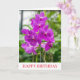 Uma bela fotografia de perto de orquídeas impressa em um cartão de aniversário deixou vazio para sua própria mensagem pessoal.