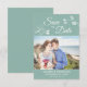 Elegante e romântico Salvem o cartão com fotos da Data, com uma lindíssima e delicada linha floral de orquídeas brancas desenhando na parte superior, sobre um fundo verde de menta clássico. Facilmente personalizável adicionando uma das suas fotos horizontais favoritas do noivado e editando os campos modelo na banda inferior verde com os seus nomes, data e local em uma fonte branca moderna e simples de todos os bonés. Para mais personalizações ou encomendas personalizadas, contacte-me livremente em acherryonthecake@hotmail.com (permita 1-2 dias úteis). Este cartão Guardar a Data faz parte da coleção "Orquídeas Delicadas - suite de casamento Mint Green" com muitos itens de coordenação para criar um pacote de casamento único.