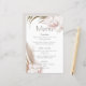 Este elegante e romântico cardápio de casamento apresenta uma design de cor de água floral tropical. Lindos buquês de flores de orquídeas coloridas, grama-pampas e folhas de palma são ilustrados no canto superior esquerdo e inferior direito.