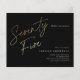 O moderno minimalista 75º convite de aniversário apresenta o script manuscrito de número de folha de ouro de na moda faux e setenta e cinco e os detalhes do seu partido em fonte de serifa clássica sobre cor de fundo preta, simples e elegante, convite de aniversário para homens e mulheres para o marco de surpresa do excelente. a cor de fundo preta pode ser alterada para qualquer cor da sua escolha.