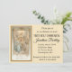 Bonito convite da Primeira Comunhão Tradicional para filho ou filha. Todos os textos, fontes e imagens podem ser modificados. Na parte de trás está o texto: O Sacramento Mais Sagrado O Sacramento Divina Todo Louvado e Todo o Ação de Graças Seja Cada Momento Thine.